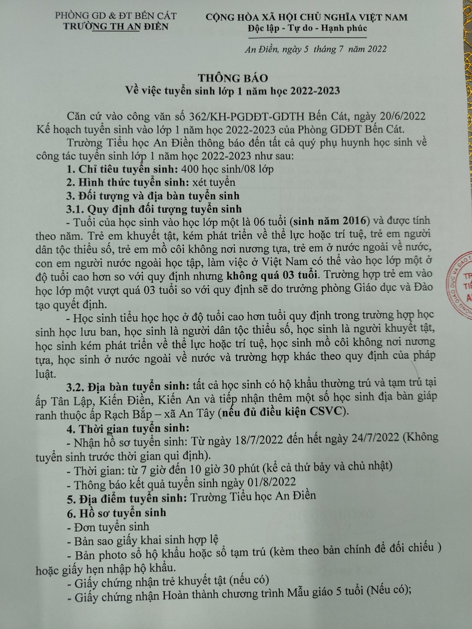 Ngày ban hành: 24/04/2024. Trích yếu: Thông báo về việc treo Quốc kỳ và nghỉ lễ kỉ niệm 49 năm ngày Giải phóng hoàn toàn miền năm - thống nhất đất nước (30/4/1975-30/4/2024) và Quốc tế lao động 01/5